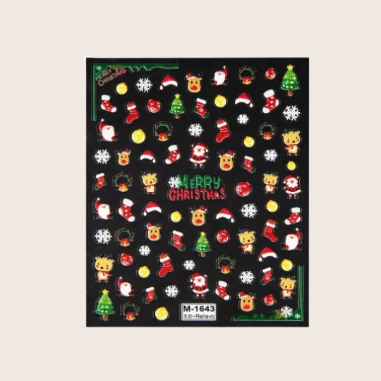 De charmerende 5D nailart stickers indeholder et udvalg af klassiske julemotiver som rensdyr, snefnug, farverige juletræer og søde snemænd. Med deres imponerende 5D-effekt kan du hurtigt og nemt skabe unikke og festlige negle, der passer perfekt til julen. De selvklæbende stickers er en favorit blandt både professionelle og begyndere og kan kombineres med perler eller rhinestones for ekstra glans.