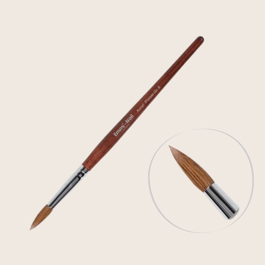 Emmi-Nail Akryl-pensel Gr.8 med træskaft er en meget fin og høj kvalitets ægte hår-pensel. Den er ideel til akryl-pulver-væske støbning og opbygning. Penslen har en acetonbestandig beskyttelseslakering med sølvhylster. Den ligger godt i hånden og sikrer behageligt arbejde.