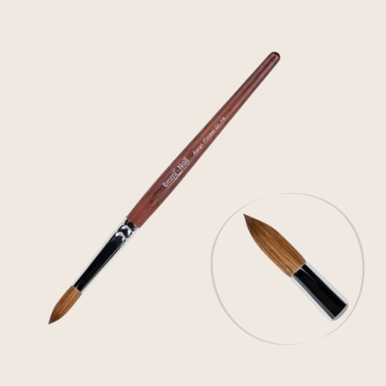 Emmi-Nail Acryl-pensel Gr.14 med træskaft er en meget fin og høj kvalitets ægte hår-pensel. Den er ideel til akryl-pulver-væske støbning og opbygning. Penslen har en acetonbestandig beskyttelseslakering med sølvhylster. Den ligger godt i hånden og sikrer behageligt arbejde.