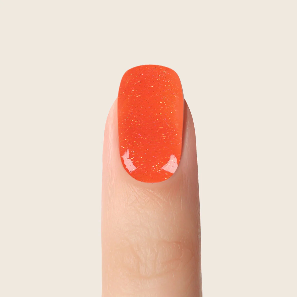 Emmi-Nail Akryl-Pigment Mango Glitter 10g. Det farvede pigment blandes med almindeligt klart akrylpulver og bearbejdes derefter som sædvanligt. Det kan bruges til enten en farverig French-spids, til hele neglen eller til individuelle nailart designs. Blandet med klart akrylpulver får det en cremet konsistens og er derfor meget let at arbejde med.