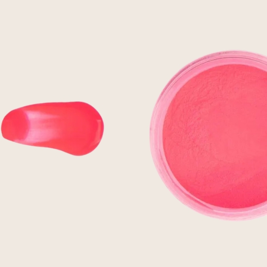Emmi-Nail Akryl-Pigment Neon Strawberry 10g. Det farvede pigment blandes med almindeligt klart akrylpulver og bearbejdes derefter som sædvanligt. Det kan bruges til enten en farverig French-spids, til hele neglen eller til individuelle nailart designs. Blandet med klart akrylpulver får det en cremet konsistens og er derfor meget let at arbejde med.