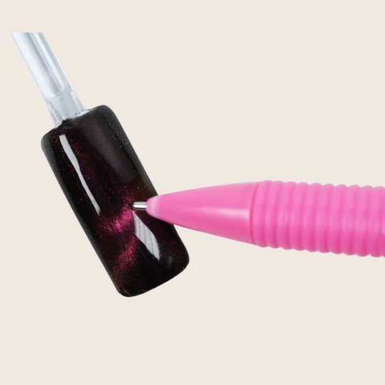 Opnå fascinerende og unikke negledesigns med Emmi-Nail Cat-Eye Magnet Pen. Denne magnetiske pen er designet til brug med vores Cat Eye geler, der er beriget med magnetiske pigmenter. Ved hjælp af pennen kan du skabe fantastiske lysreflekser og effektfulde mønstre, såsom fine striber, på dine negle. Den perfekte måde at tilføje et magisk touch til dine negledesigns!
