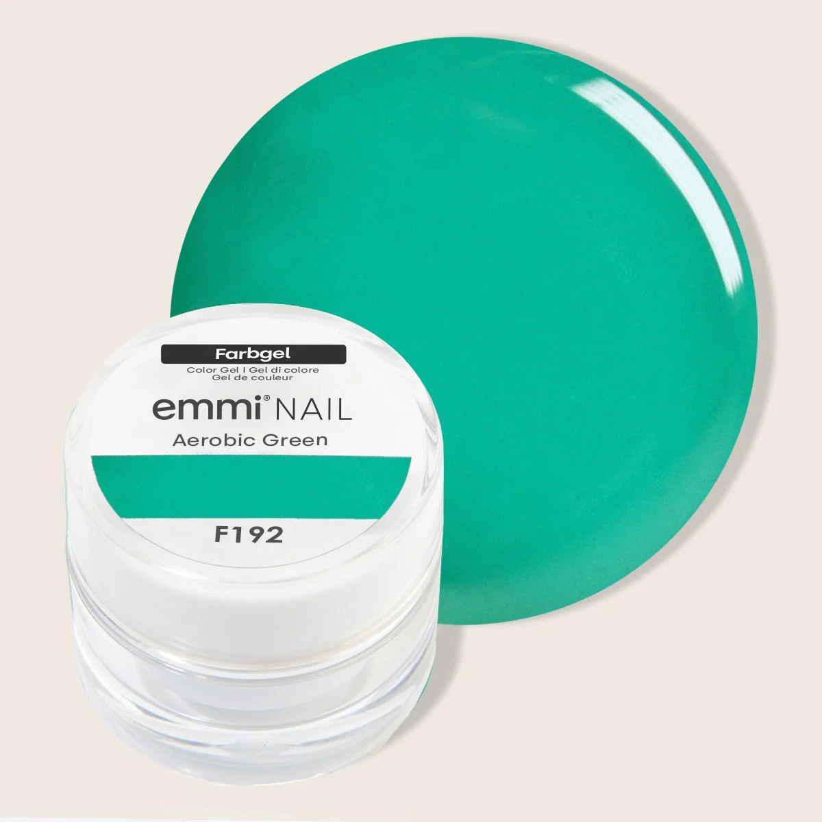 Emmi-Nail Color Gel Aerobic Green 5ml sikrer et langtidsholdbart og professionelt farveresultat på dine negle. Emmi-Nail Color Gels er fremstillet med høj pigmentering og netop på grund af dens lave opacitet / gennemsigtighed dækker farverne sublimt og du kan nemt kan få til at dække fuldstændig ved 1-2 farvelag.