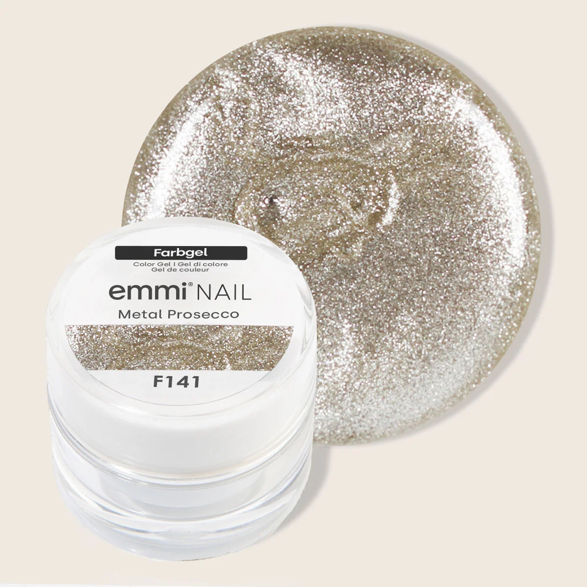 Emmi-Nail Color Gel Metal Prosecco 5ml sikrer et langtidsholdbart og professionelt farveresultat på dine negle. Emmi-Nail Color Gels er fremstillet med høj pigment intensitet  og netop på grund af dens lave opacitet / gennemsigtighed dækker farverne sublimt og du kan nemt kan få til at dække fuldstændig ved 1-2 farvelag.