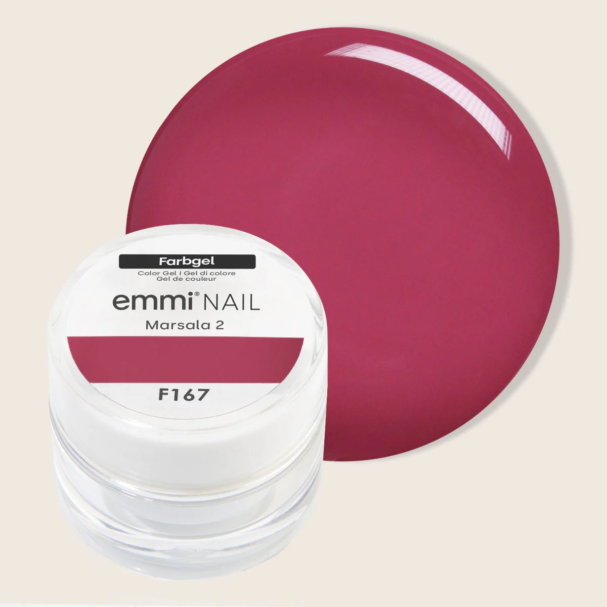 Emmi-Nail Color Gel Marsala 2 5ml sikrer et langtidsholdbart og professionelt farveresultat på dine negle. Emmi-Nail Color Gels er fremstillet med høj pigment intensitet  og netop på grund af dens lave opacitet / gennemsigtighed dækker farverne sublimt og du kan nemt kan få til at dække fuldstændig ved 1-2 farvelag.