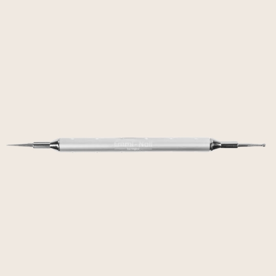 Gør det nemt at skabe den perfekte smile-linje til din French manicure, selv hvis du er ny inden for negledesign. Emmi-Nail Dotting Tool med sten er et alsidigt værktøj, der løfter dine negledesigns til næste niveau og samtidig tilføjer et strejf af elegance til dit arbejdsbord.