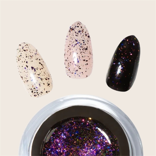 Glitter Builder Gel -005- kombinerer holdbarhed og glamour i ét unikt produkt! Den mellemviskose og selvglattende builder gele gør det nemt at opbygge smukke og stærke negle – samtidig med at de fine glimmerpartikler og skinnende shapes giver en iøjnefaldende effekt.