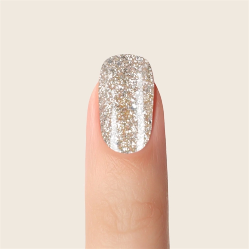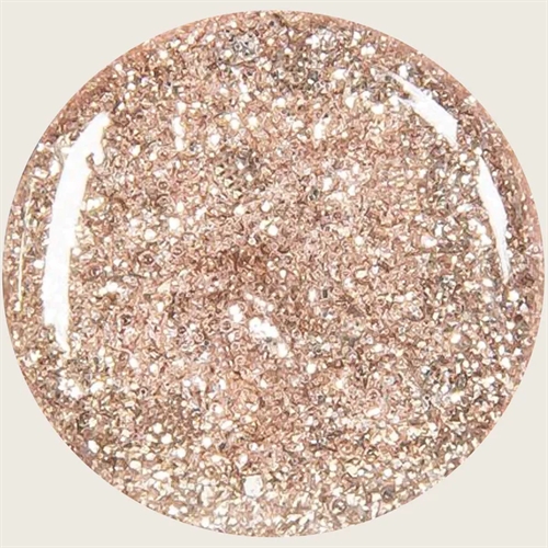 Med Emmi-Nail Glossy Gels har du et hav af muligheder når det kommer til anvendelighed. Glossy Color (glitter) Gel Golden Wallstreet, er en ultra pigmenteret glitter, som både er god til at anvende som hel-farve på neglene, men som også gør sig rigtig godt som nail art / painting gele. Netop Glossy Gel serien kan også anvendes som bundfarve til chrome pigmenter, da de ikke har sticky layer efter hærdning.