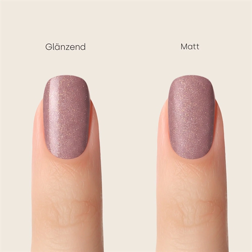 6. Når sidste lag Glossy Gel er hærdet påføres Emmi-Nail Sealing Velvet Mat direkte på den hærde Glossy gel og hærdes derefter i 240 sek. i din uv/led lampe.