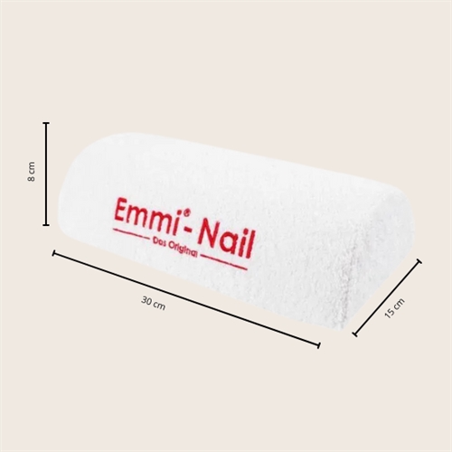 Emmi-Nail Håndstøtte er designet til at gøre dine manicure- og pedicurebehandlinger mere komfortable og effektive. Den bløde, polstrede skumkerne sikrer, at dine kunder kan hvile hænderne behageligt under behandlingen. Det aftagelige frotteebetræk med praktisk velcrolukning gør det nemt at fjerne og vaske betrækket, så du altid kan opretholde en høj hygiejnestandard.