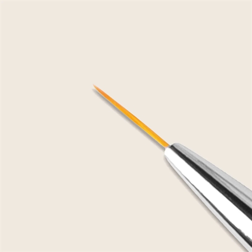 Penslen er fremstillet af slidstærkt nylonhår og har en acetoneresistent lakering, der beskytter mod kemiske påvirkninger. Det ergonomiske design og det sølvfarvede metal sikrer en behagelig arbejdsoplevelse. Kombineret med Emmi-Nail Penselrenser og Penselbox får du et komplet sæt til professionel pleje og opbevaring af dine pensler.