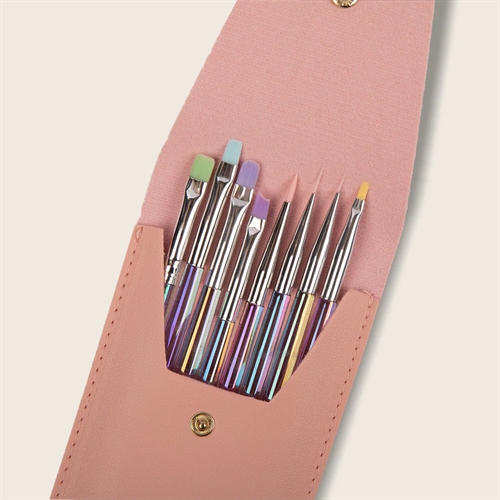 Med de forskellige penselstørrelser og -former er du dækket ind til alle teknikker – fra opbygning og French til fine nailart og kreative designs. Sættet leveres i en praktisk penseltaske, som beskytter penslerne og sikrer hygiejnisk og overskuelig opbevaring, både i salonen og på farten.