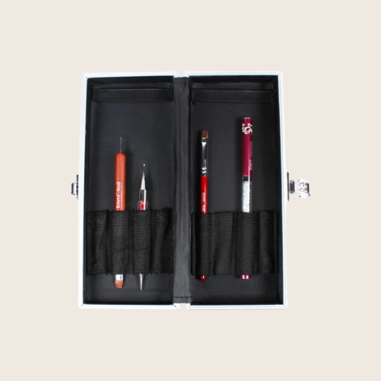 Hold dine pensler og værktøjer organiseret og beskyttet med denne elegante Emmi-Nail Penselboks – et must-have for enhver professionel negletekniker.