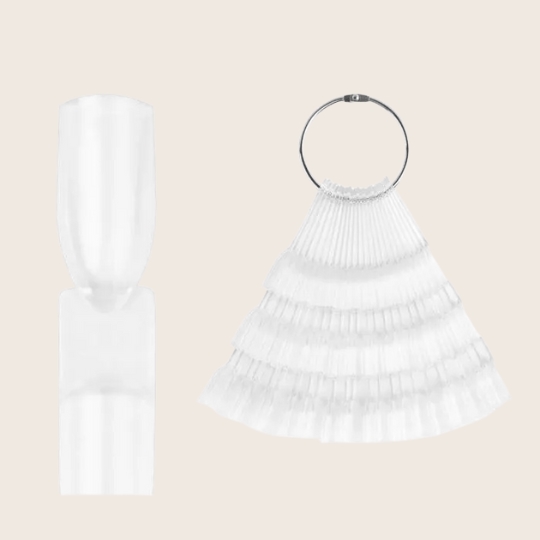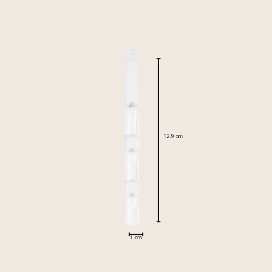 Emmi-Nail 3'er Tip Sticks (24 stk.) giver dig en elegant og praktisk løsning til at præsentere dine nail art-kreationer, color gels og UV-lakker for dine kunder. De klare tips er monteret på en praktisk metalring, der nemt kan åbnes, så du hurtigt kan udskifte eller tilpasse dine designs. Mens du stadig arbejder med én kunde, kan den næste allerede vælge sit ønskede negledesign – en tidsbesparende løsning, der effektiviserer din arbejdsgang.