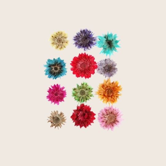 ✔ Indhold: 12 farverige blomsterhoveder (gul, rød, blå, grøn, osv.)