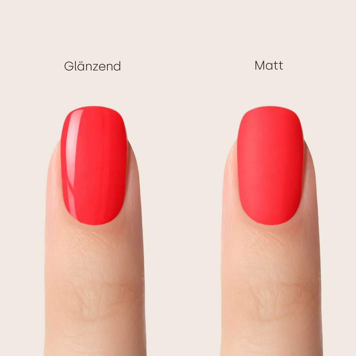 Coral Red’s glatte og cremede konsistens sikrer en jævn påføring som almindelig neglelak, men med UV-Lakkens holdbarhed og styrke. For optimal glans og beskyttelse anbefales det altid at anvende en basecoat og afslutte med en topcoat.