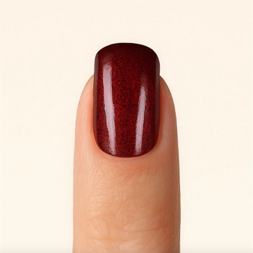 Skab et elegant og moderne look med Metallic Dreams, en rød farve med brun undertone og metallisk skær. Denne UV-Lack tilføjer et strejf af glamour til dine negle og giver en eksklusiv glans, der holder i op til 3 uger. Den ridsefaste overflade og holdbare konsistens gør den perfekt til naturnegle, samtidig med at den er nem at påføre.
