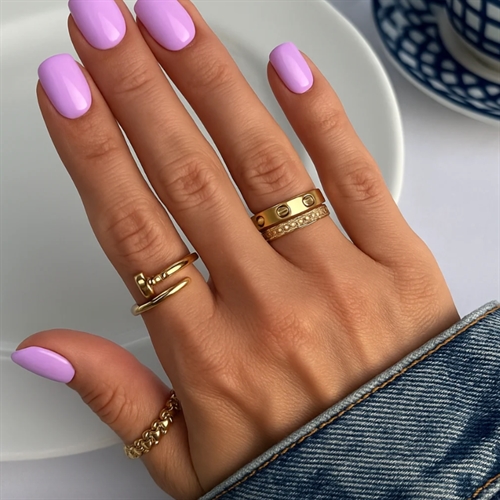 Oplev feriestemningen med Santorini, en smuk lyserød UV-Lack med en subtil lilla undertone, der bringer minder om varme dage og solrige kyster. Denne farve giver dine negle en glansfuld, eksklusiv finish, der varer op til 3 uger, samtidig med at den beskytter mod ridser og bevarer et friskt look.